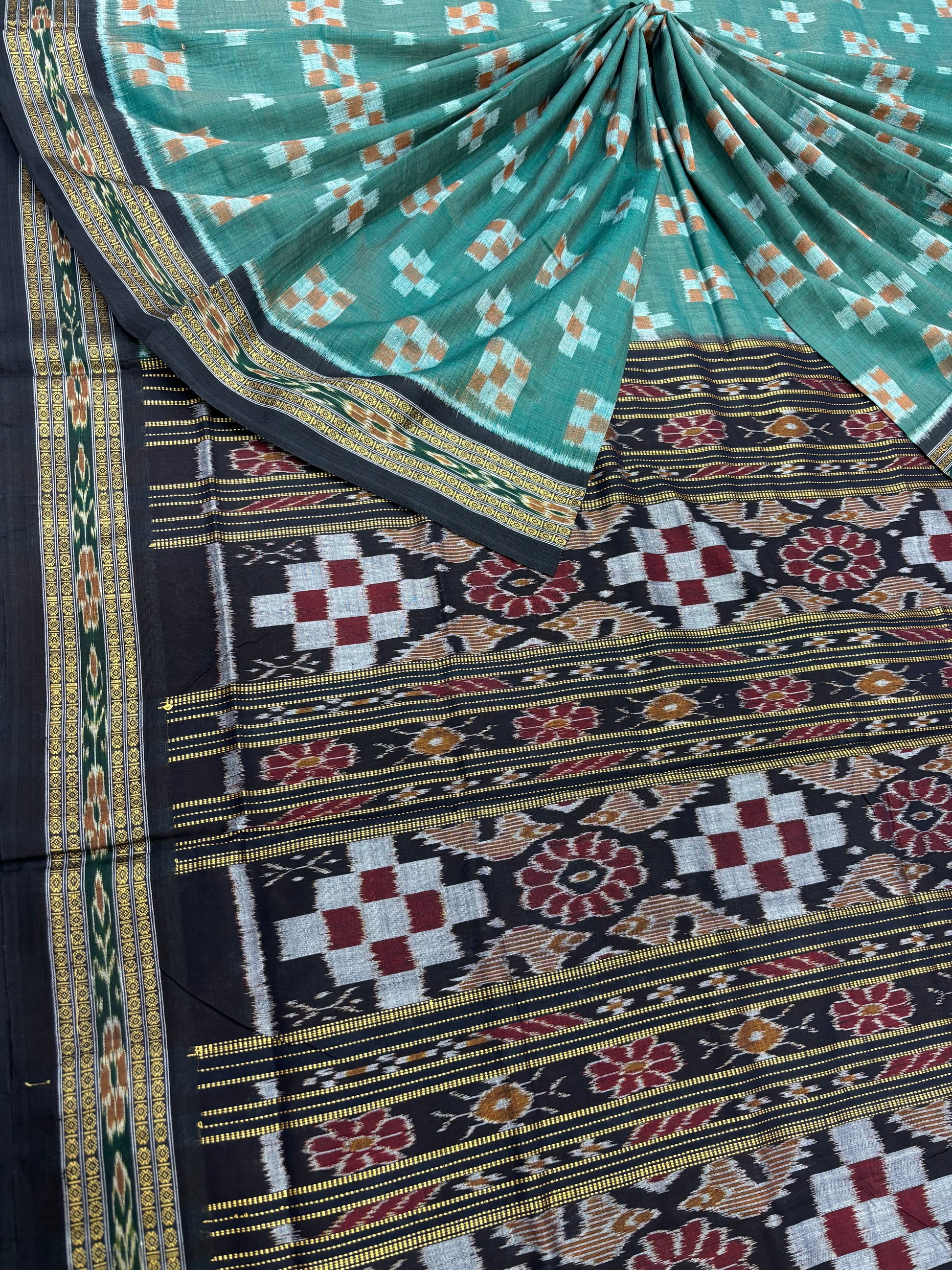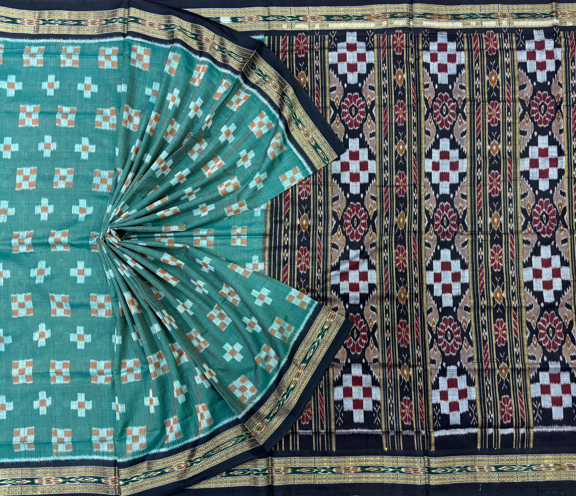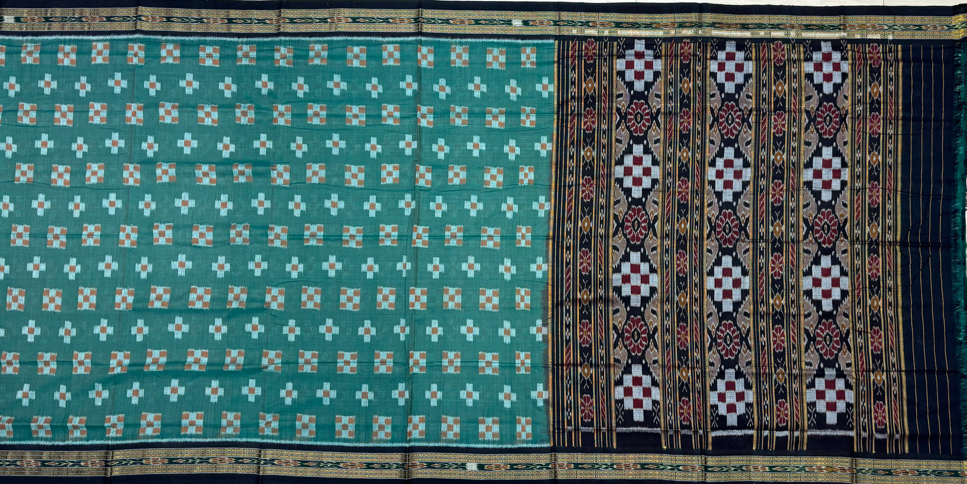 Weaver communities of Maniabandha and Nuapatana of Odisha traditionally weave this kind of saree. Common motifs are star, temple, conch, rudraksh, fish, chakra, lotus etc .The inspiration of all its designs comes from nature. The origin of Khandua traces back to 12th Century AD and it is closely associated with Lord Jagannath Temple rituals at Puri, Odisha. Originally designed using red, yellow, maroon, and cream colors, they contain Texts from the Gita Govinda. Gita Govinda or the song of Govinda is a work composed by the 12th century Indian poet Jayadeva. It describes the relationship between Krishna and the gopis (female cowherds), in particular Radha. Khandua is traditionally red or orange in color. The red color is prepared naturally from the shorea robusta (sal tree).The design motif has an auspicious elephant that represents Buddha surrounded by trailing vine with peacocks in it, a large many petaled flower, a unique Odisha's animal called Nabagunjar, a deula kumbha. The elephant in Khandua ikat from Nuapatana usually varies from elephant motives in ikat from sambalpuri saree as well as ikat from other parts of Orissa. Khandua has plain borders in contrary to borders with motifs in case of the other ikat of Odisha. During the rule of Gajapatis , Sarees are made and transported to jagannath temple. Khandua saree made of one piece of khandua silk called caukandika. Lightweight, soft, pocket-friendly, stunning. Khandua cottons are every woman's go-to sarees due to such endearing qualities.
