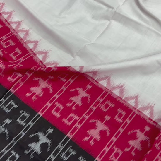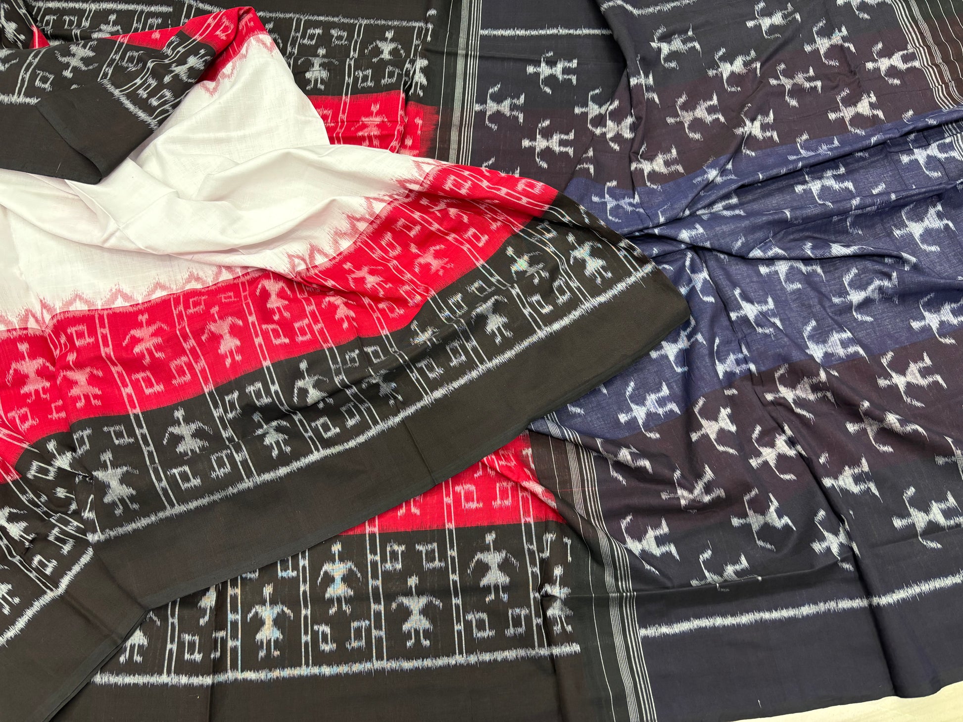 Weaver communities of Maniabandha and Nuapatana of Odisha traditionally weave this kind of saree. Common motifs are star, temple, conch, rudraksh, fish, chakra, lotus etc .The inspiration of all its designs comes from nature. The origin of Khandua traces back to 12th Century AD and it is closely associated with Lord Jagannath Temple rituals at Puri, Odisha. Originally designed using red, yellow, maroon, and cream colors, they contain Texts from the Gita Govinda. Gita Govinda or the song of Govinda is a work composed by the 12th century Indian poet Jayadeva. It describes the relationship between Krishna and the gopis (female cowherds), in particular Radha. Khandua is traditionally red or orange in color. The red color is prepared naturally from the shorea robusta (sal tree).The design motif has an auspicious elephant that represents Buddha surrounded by trailing vine with peacocks in it, a large many petaled flower, a unique Odisha's animal called Nabagunjar, a deula kumbha. The elephant in Khandua ikat from Nuapatana usually varies from elephant motives in ikat from sambalpuri saree as well as ikat from other parts of Orissa. Khandua has plain borders in contrary to borders with motifs in case of the other ikat of Odisha. During the rule of Gajapatis , Sarees are made and transported to jagannath temple. Khandua saree made of one piece of khandua silk called caukandika. Lightweight, soft, pocket-friendly, stunning. Khandua cottons are every woman's go-to sarees due to such endearing qualities.
