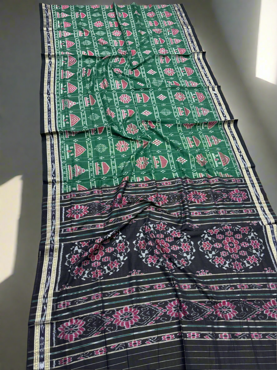 Weaver communities of Maniabandha and Nuapatana of Odisha traditionally weave this kind of saree. Common motifs are star, temple, conch, rudraksh, fish, chakra, lotus etc .The inspiration of all its designs comes from nature. The origin of Khandua traces back to 12th Century AD and it is closely associated with Lord Jagannath Temple rituals at Puri, Odisha. Originally designed using red, yellow, maroon, and cream colors, they contain Texts from the Gita Govinda. Gita Govinda or the song of Govinda is a work composed by the 12th century Indian poet Jayadeva. It describes the relationship between Krishna and the gopis (female cowherds), in particular Radha. Khandua is traditionally red or orange in color. The red color is prepared naturally from the shorea robusta (sal tree).The design motif has an auspicious elephant that represents Buddha surrounded by trailing vine with peacocks in it, a large many petaled flower, a unique Odisha's animal called Nabagunjar, a deula kumbha. The elephant in Khandua ikat from Nuapatana usually varies from elephant motives in ikat from sambalpuri saree as well as ikat from other parts of Orissa. Khandua has plain borders in contrary to borders with motifs in case of the other ikat of Odisha. During the rule of Gajapatis , Sarees are made and transported to jagannath temple. Khandua saree made of one piece of khandua silk called caukandika. Lightweight, soft, pocket-friendly, stunning. Khandua cottons are every woman's go-to sarees due to such endearing qualities.