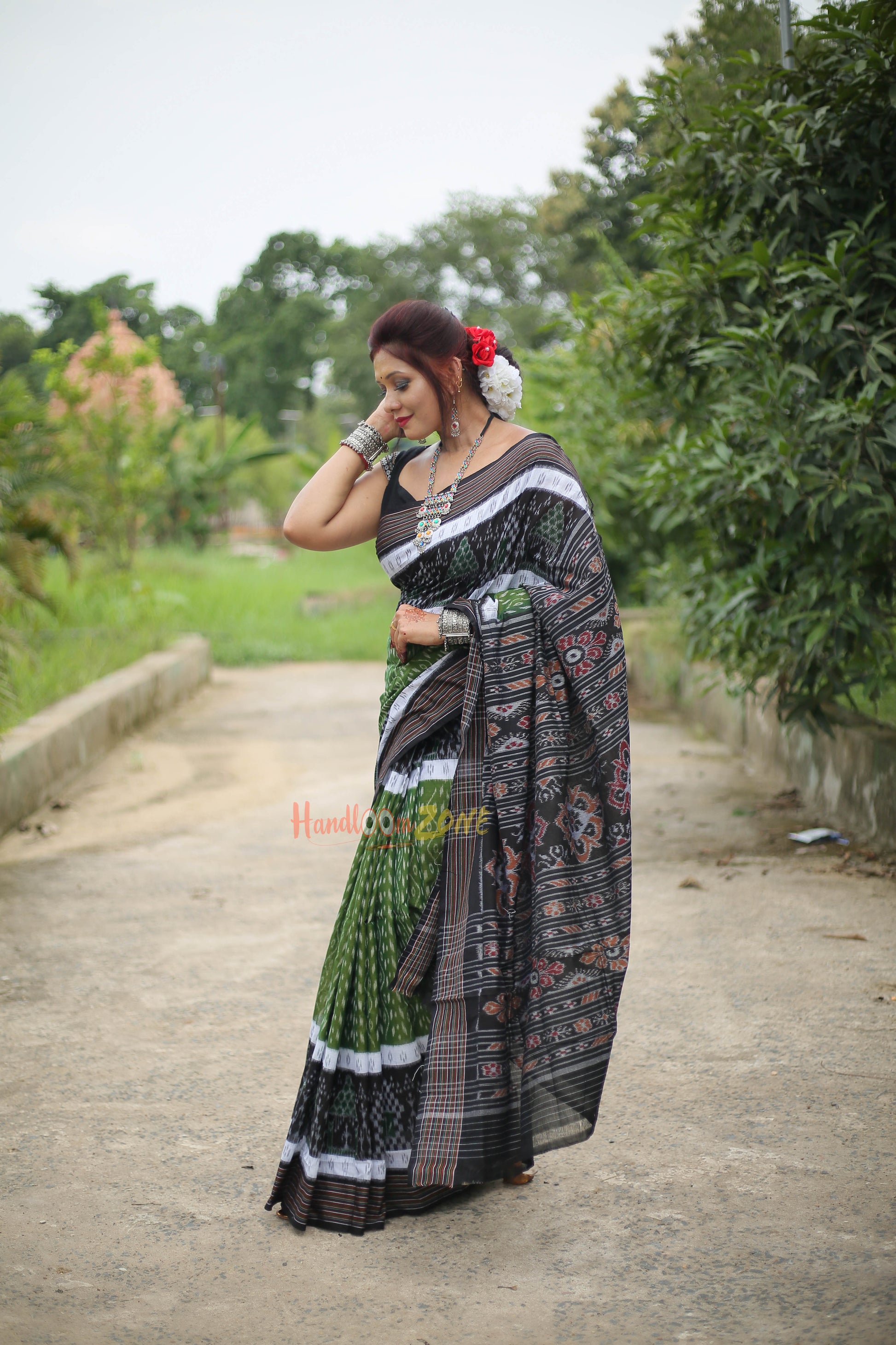 Weaver communities of Maniabandha and Nuapatana of Odisha traditionally weave this kind of saree. Common motifs are star, temple, conch, rudraksh, fish, chakra, lotus etc .The inspiration of all its designs comes from nature. The origin of Khandua traces back to 12th Century AD and it is closely associated with Lord Jagannath Temple rituals at Puri, Odisha. Originally designed using red, yellow, maroon, and cream colors, they contain Texts from the Gita Govinda. Gita Govinda or the song of Govinda is a work composed by the 12th century Indian poet Jayadeva. It describes the relationship between Krishna and the gopis (female cowherds), in particular Radha. Khandua is traditionally red or orange in color. The red color is prepared naturally from the shorea robusta (sal tree).The design motif has an auspicious elephant that represents Buddha surrounded by trailing vine with peacocks in it, a large many petaled flower, a unique Odisha's animal called Nabagunjar, a deula kumbha. The elephant in Khandua ikat from Nuapatana usually varies from elephant motives in ikat from sambalpuri saree as well as ikat from other parts of Orissa. Khandua has plain borders in contrary to borders with motifs in case of the other ikat of Odisha. During the rule of Gajapatis , Sarees are made and transported to jagannath temple. Khandua saree made of one piece of khandua silk called caukandika. Lightweight, soft, pocket-friendly, stunning. Khandua cottons are every woman's go-to sarees due to such endearing qualities.