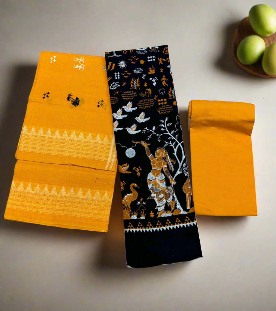 This material is a beautiful handloom dress material by a newcomer designer this design in women & girls ethnic wear multipurpose materials will love our light-weight. can be worn in casual, traditional, festival function, & daily wear. appreciated for attributes like color finishing high quality & smooth its loved in East, north & south India. this material is not readymade materials & all are women girls prefect fit or size